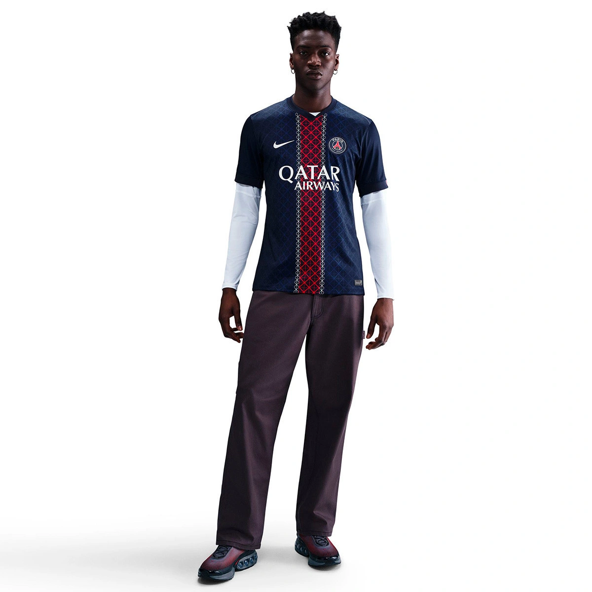 Domaći Dres PSG-a 2025-2026 nadahnut je trima kultnim pariškim znamenitostima. Upečatljiva središnja pruga u klasičnoj plavoj boji s detaljem dizajna nadahnutim strukturama ovih arhitektonskih ikona.