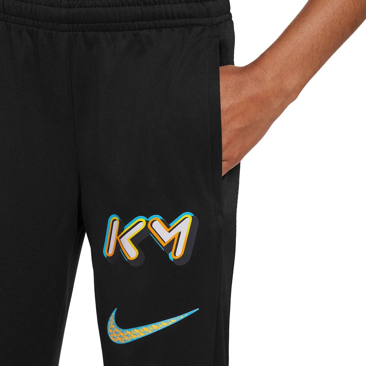 Pokažite podršku svom idolu s ovim dječjim Kylian Mbappé dugim hlačama u crnoj boji s grafikom na desnoj nogavici.