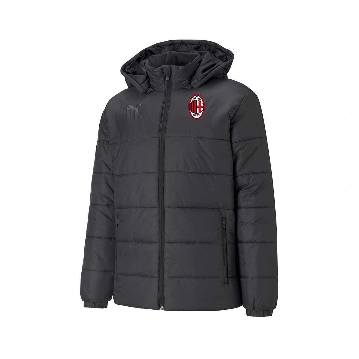 Puma TeamLIGA jakna. Odjevni predmet ima prošiveni dizajn, kapuljaču i bočne džepove s patentnim zatvaračem.