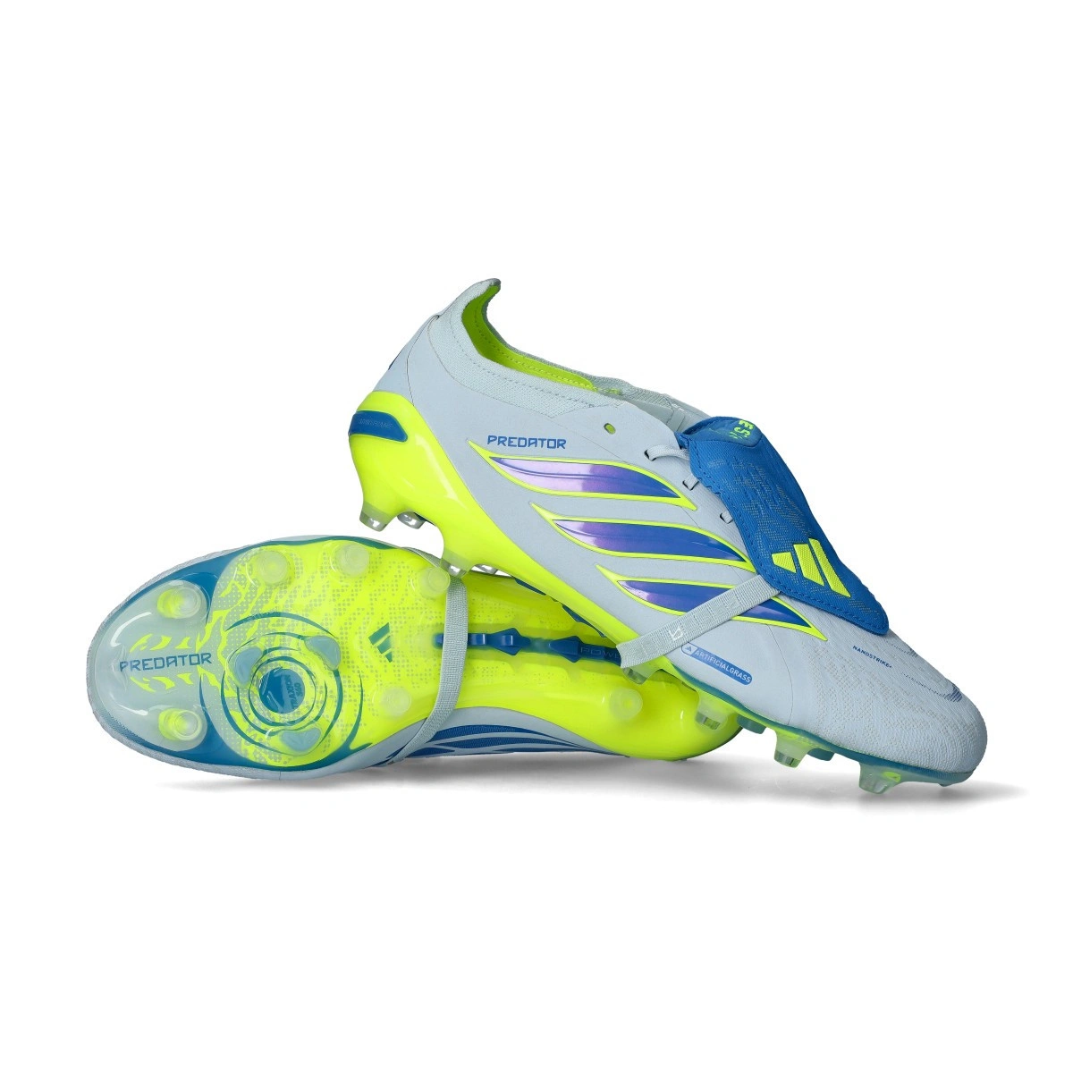 Lagana konstrukcija s vanjskim pojačanjem pete za dinamičnu trakciju i stabilnost uz STRIKEFRAME tehnologiju. Potpuno lagana ploča. Čiji čepovi u obliku očnjaka povećavaju trakciju i rotacijsku agilnost, omogućujući optimalne uvjete za postizanje odlučujućeg gola.