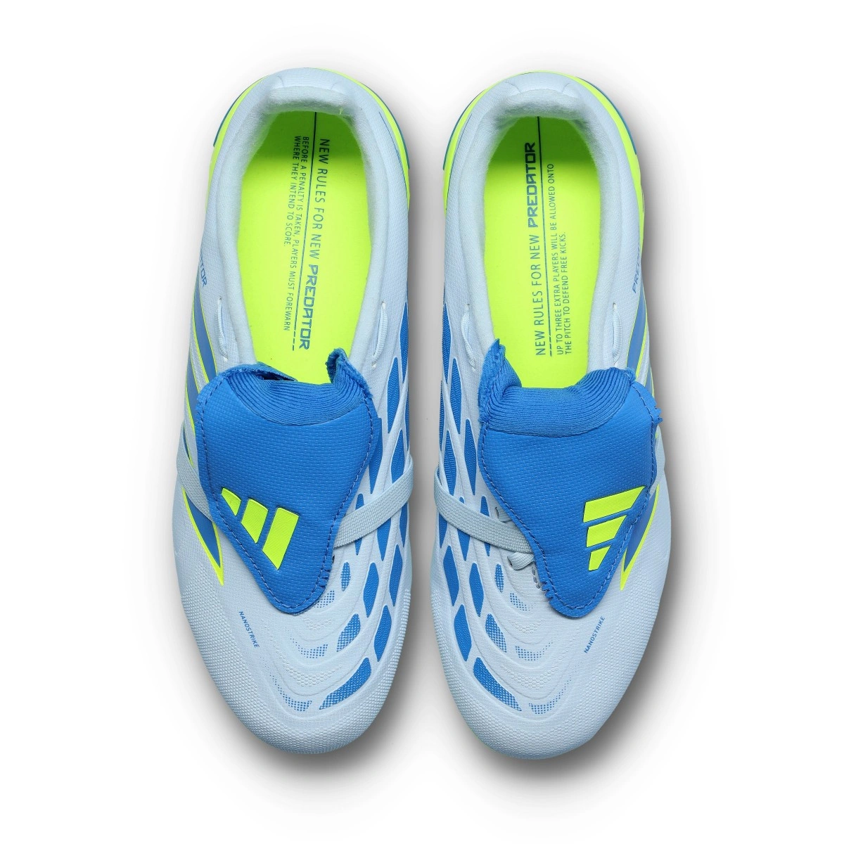 Lagana konstrukcija s vanjskim pojačanjem pete za dinamičnu trakciju i stabilnost uz STRIKEFRAME tehnologiju. Potpuno lagana ploča. Čiji čepovi u obliku očnjaka povećavaju trakciju i rotacijsku agilnost, omogućujući optimalne uvjete za postizanje odlučujućeg gola.