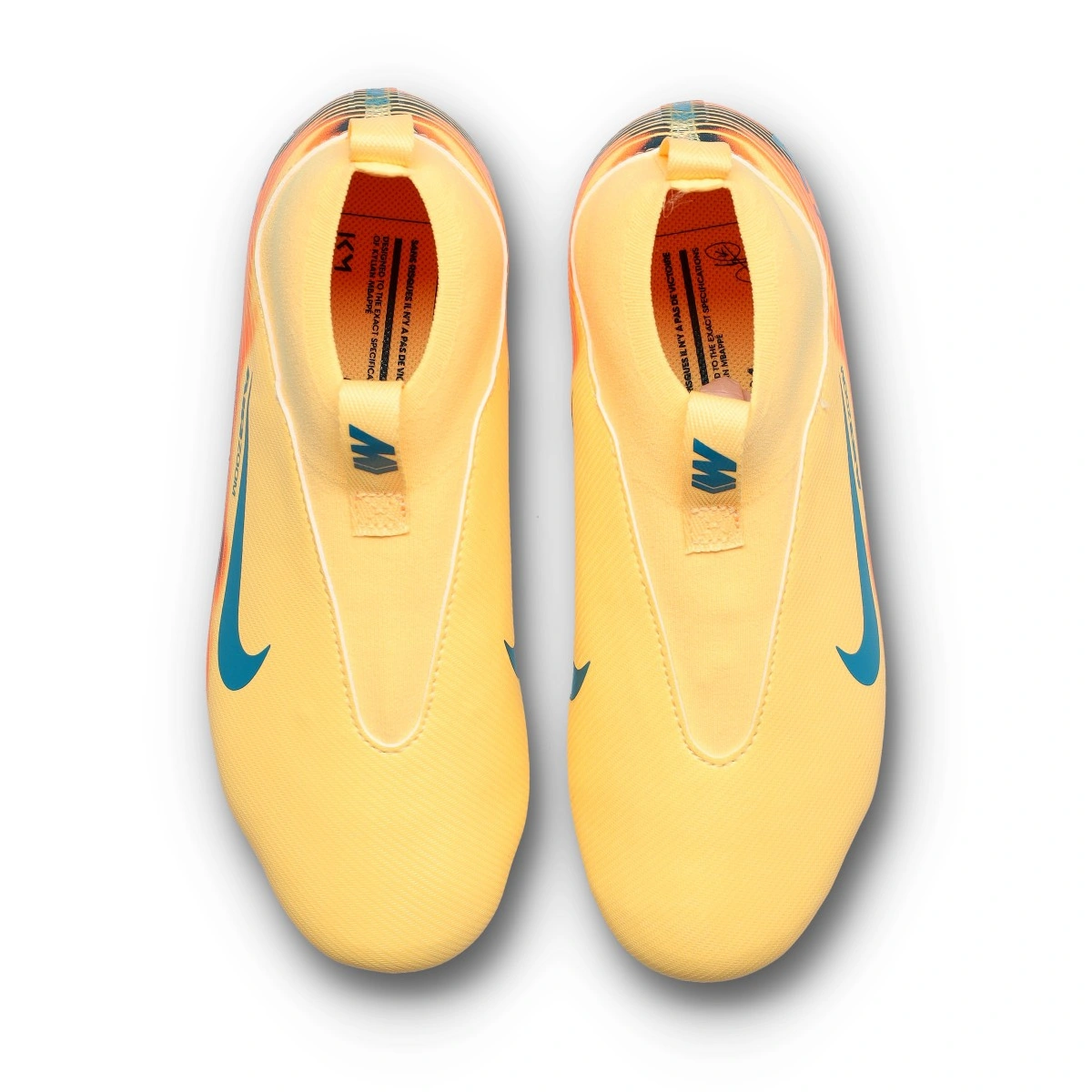Dizajnirane za čistu brzinu Kyliana Mbappéa, nove čizme francuske zvijezde dolaze u živahnoj narančastoj boji, već prikazanoj u prethodnim izdanjima. S laganim i eksplozivnim dizajnom, ovaj paket slavi Mbappéovu novu eru u Real Madridu, kombinirajući visokotehnološku tehnologiju s ekskluzivnim detaljima: njegov osobni logo, reference na Francusku i bijeli klub. Dizajnirane za svakoga tko želi napraviti razliku. Nabavite svoj par sada!