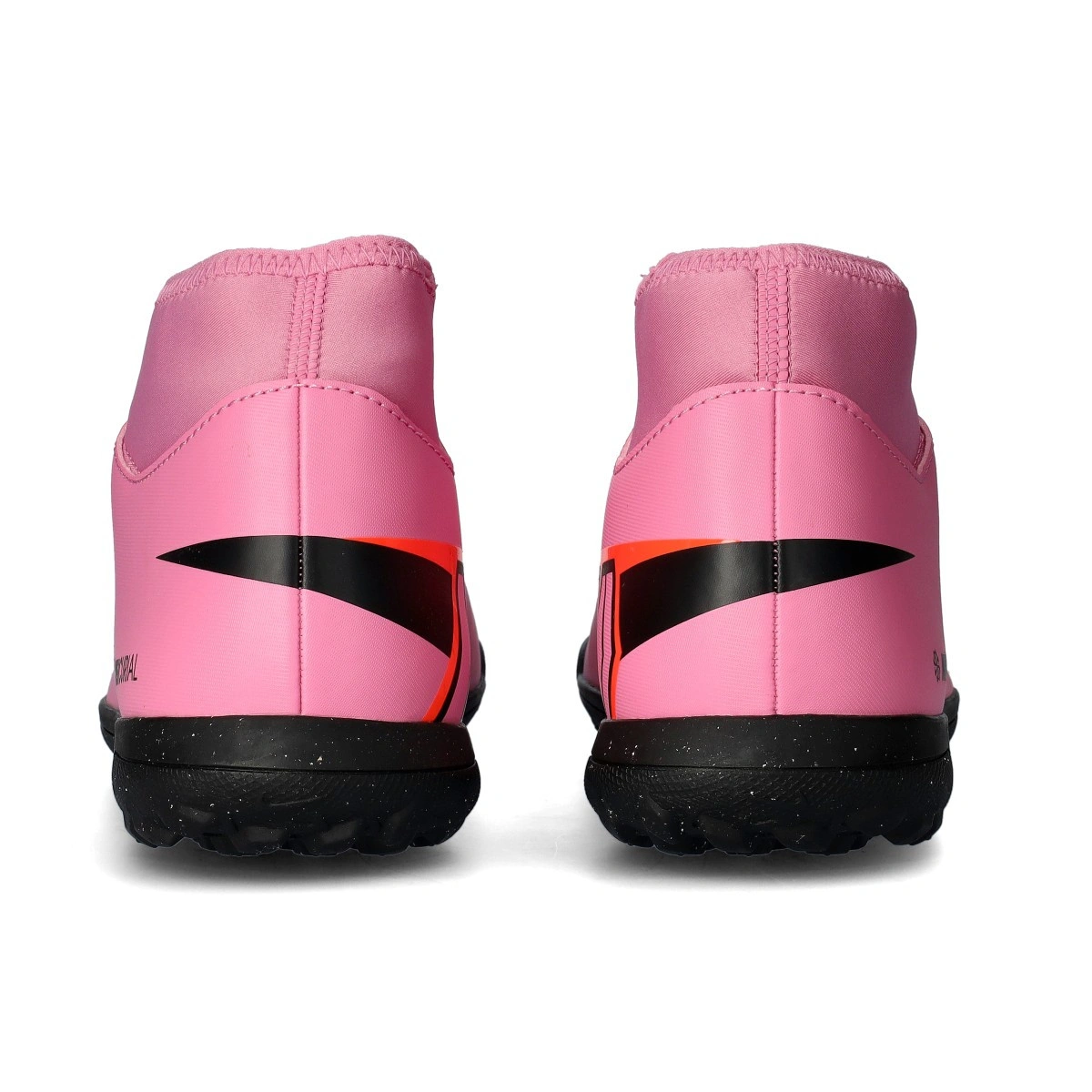 Kopačka Nike Mercurial Superfly 10 Klub Turf. Sintetičko gornjište s podstavom za čarape za upotrebu na tepihu, umjetnoj travi ili betonskim terenima. Početni prtljažnik u paleti boja Magic Flamingo-Black-Total Crimson.